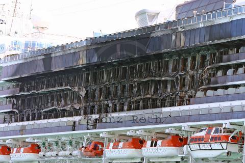 Headline: Schiffskatastrophe Star Princess Caption: Brand auf dem Kreuzfahrtschiff Star Prinzess morgens um 3 Uhr am 25.3.2006 auf dem Weg von den Cayman Islands nach Jamaica. Nachts um 3 Uhr in der Früh warf jemand eine Kippe über Bord, die auf einem anderen Balkon landete, so endstand das Feuer. Das Schiff hatte fast 2700 Passagiere und 1100 Mann Besatzung an Bord. *** Foto: Cornelia Galisch ***